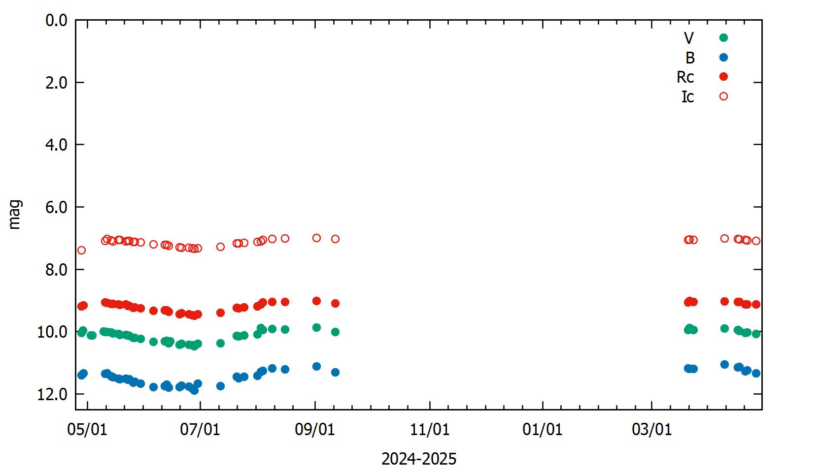 ゆっくり減光していますが,爆発の兆候はありません。