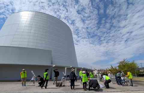 5月3日 仙台天文同好会メンバーによるの太陽観望会を仙台市天文台にて行いました。太陽活動が活発な周期にあり肉眼で確認できる大きな黒点やプロミネンスを多くの方に楽しんでいただきました。参加された同好会メンバーは12人、風はありましたが暖かい日で気持ちの良い休日を過ごせました。