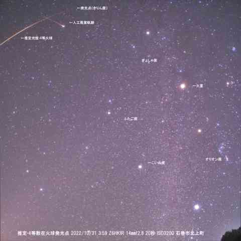 推定-4等散在火球と思われる流星です。ご覧下さい。
