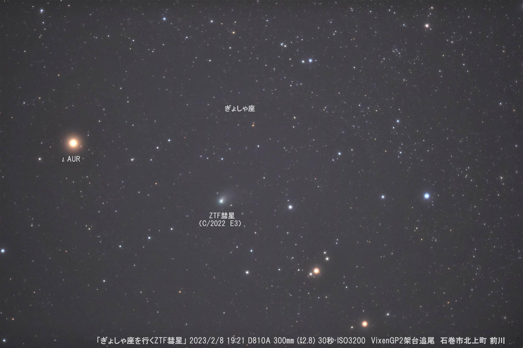 ぎょしゃ座のカペラ付近を通過後ぎょしゃ座のι星に近づいたZTF彗星です。