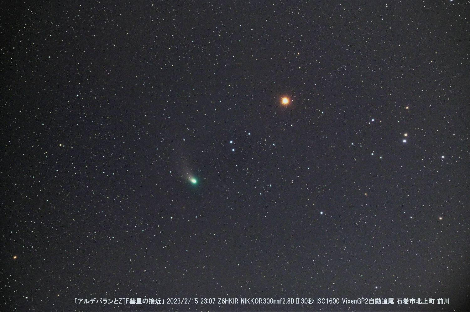 前日と同様にアルデバランに接近したまま移動していますので,彗星の移動の様子が分かりやすいです。