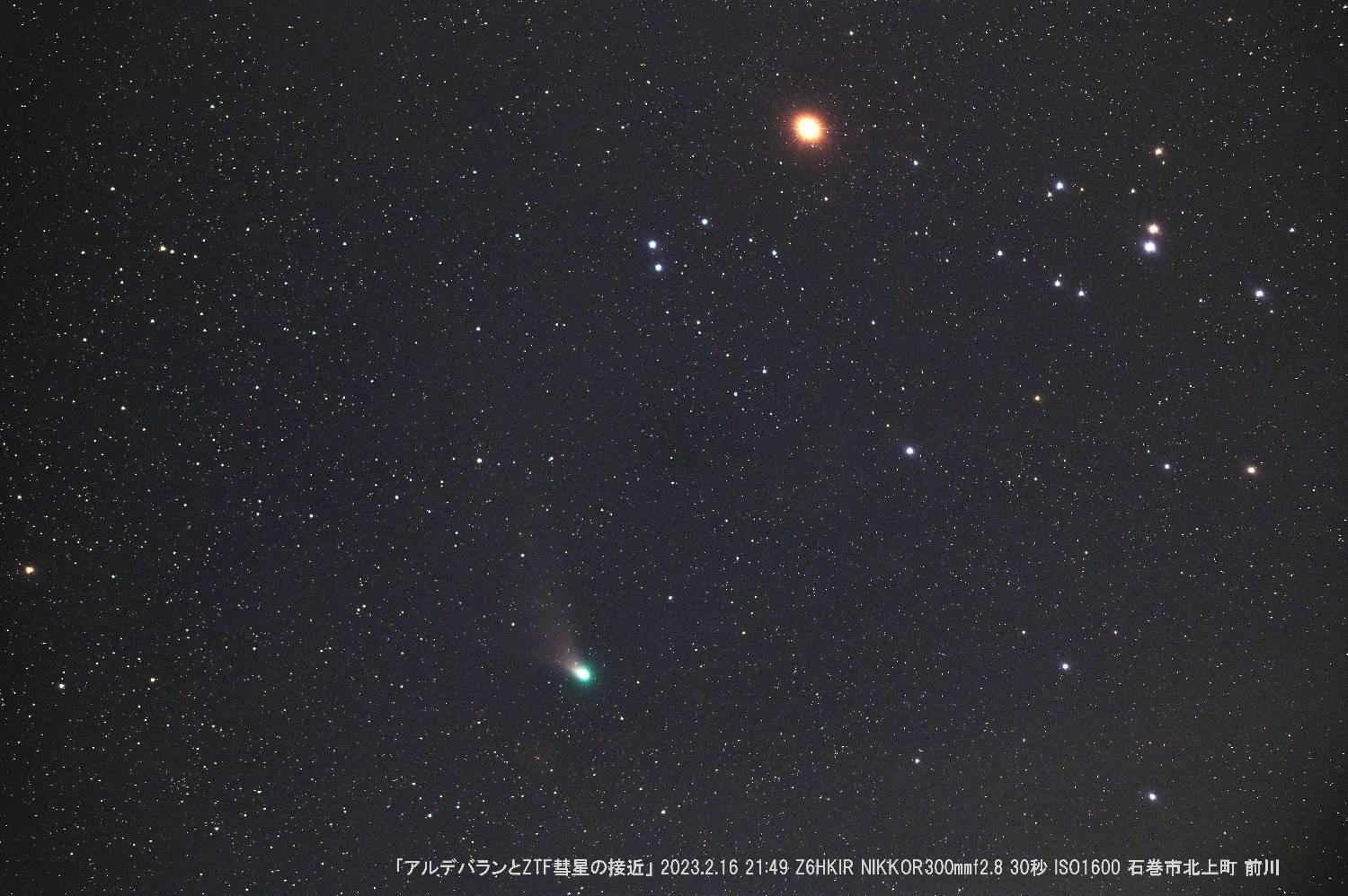 16日のZTF彗星とアルデバラン接近