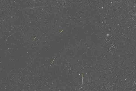 85㎜中望遠レンズで捕らえた推定光度4等以上と思われる流星の写真です。約1時間分の比較明合成にしました。