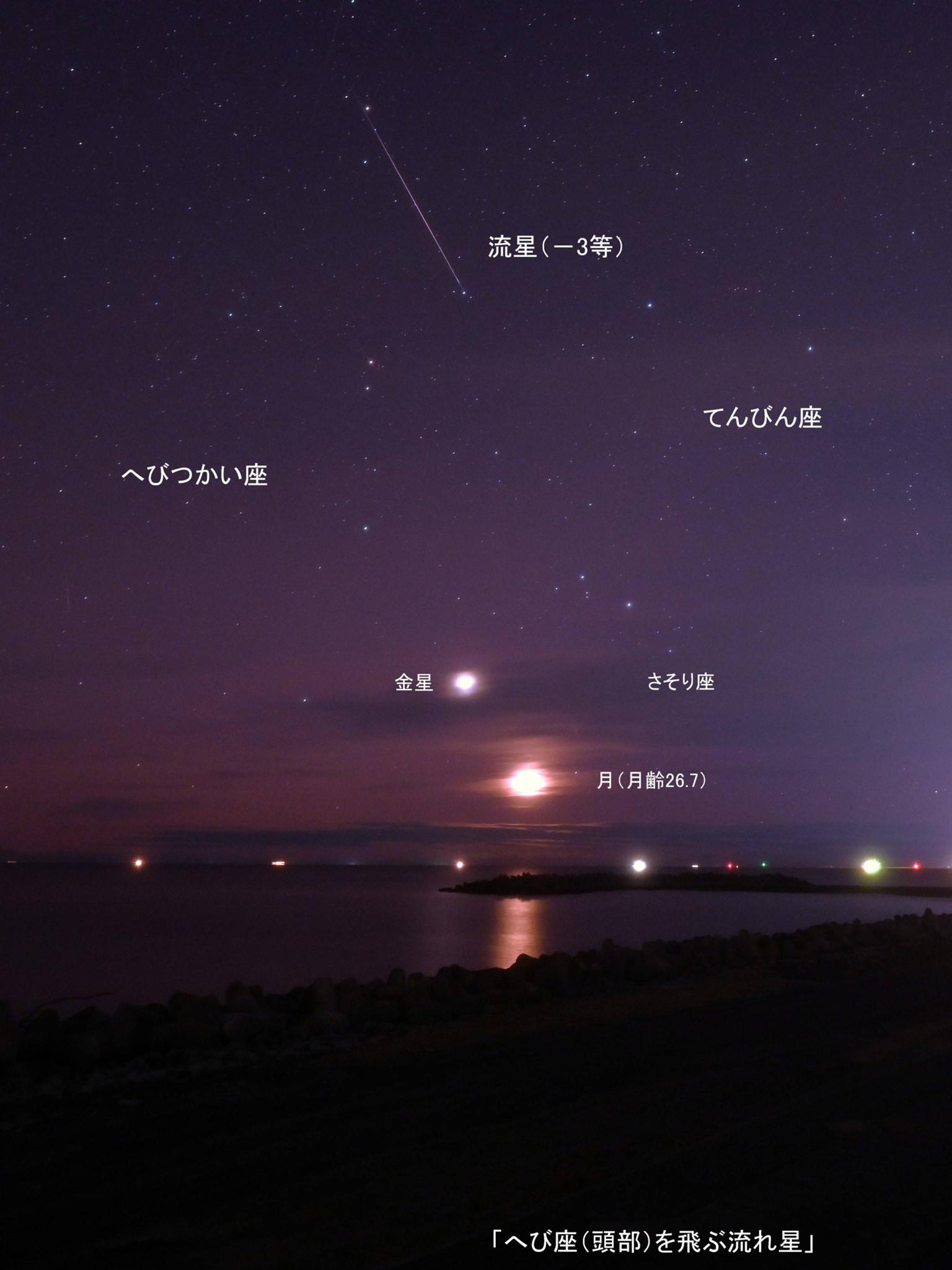 月,惑星,流星,そして朝焼けと美しい写真ですね。