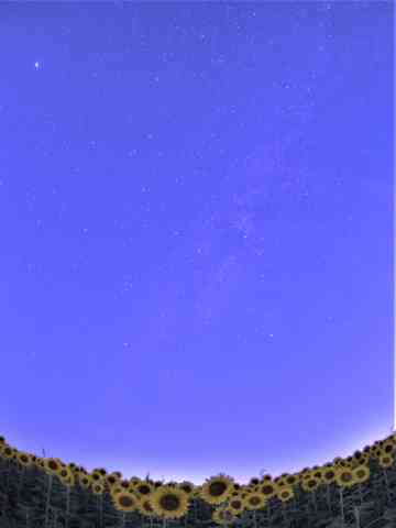 毎年行っている山元町のヒマワリ畑。今年も行ってきました。出会いは夜。晴れるかどうか分からないままに,夜になってからゆっくり出発。おかげで,霞がかかった天の川とヒマワリ畑に出会えました。日の出前に終えて終えて,天の川観察会に集まった,ヒマワリたちとおしゃべりして帰りました。