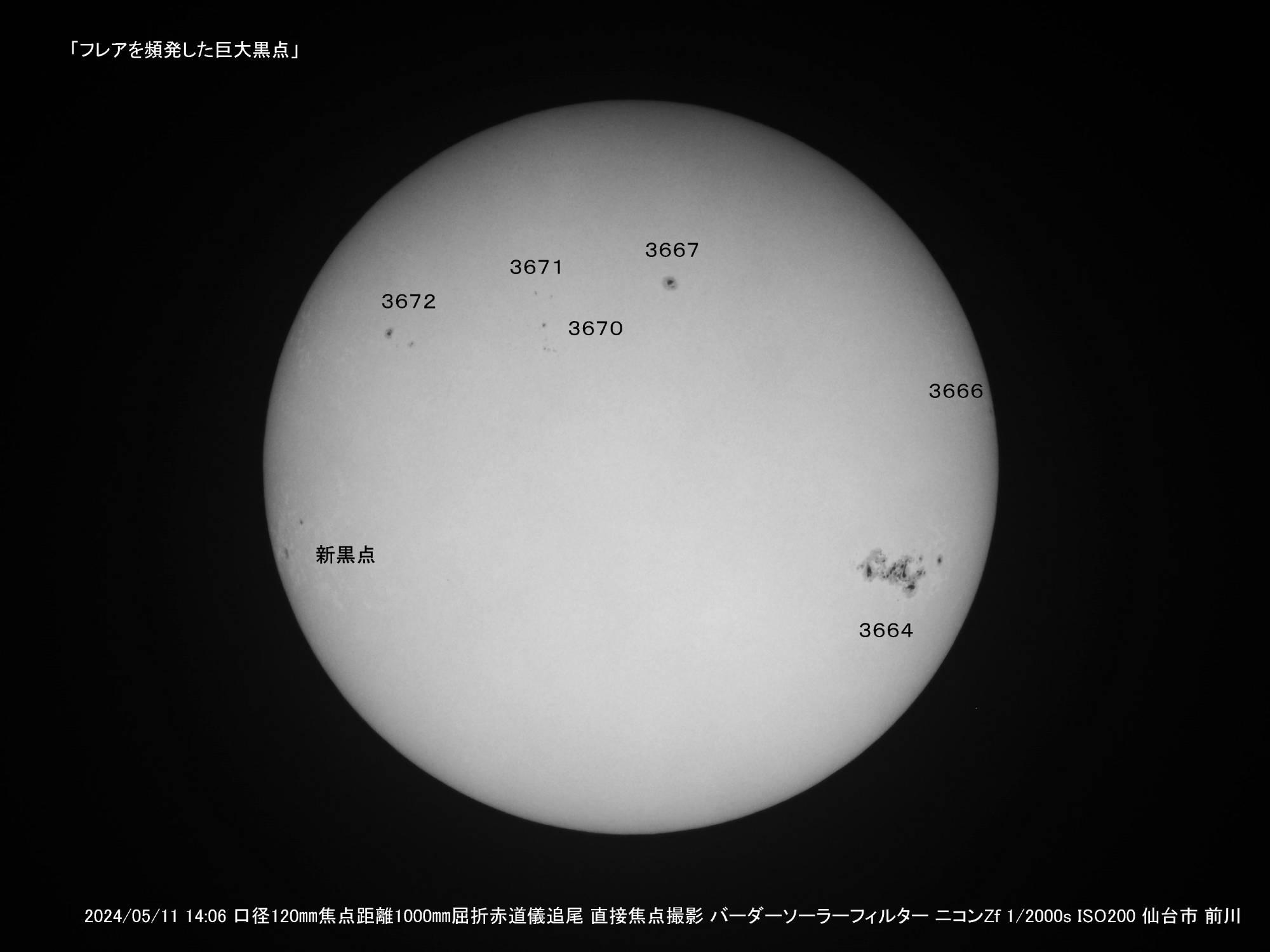 お二人の会員が本日の様子を伝えております黒点は、まさに巨大黒点です。極大期の特徴ですね。