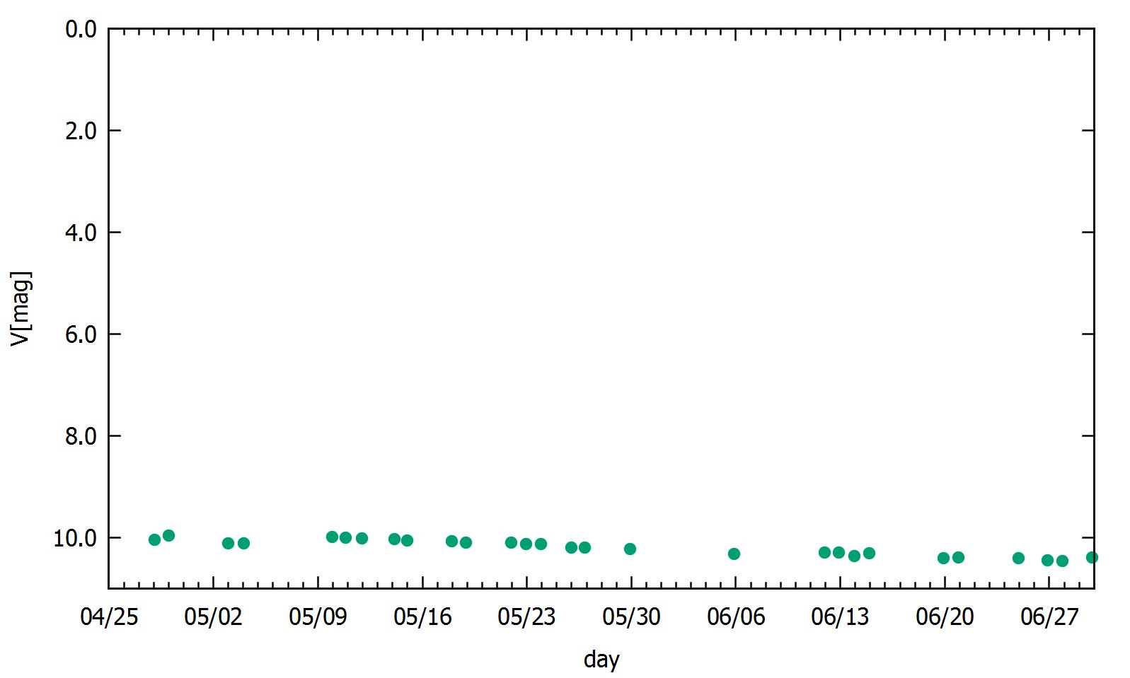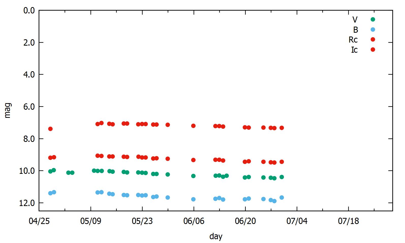 相変わらず10等級ですが,B,V,Rc,Icの4色測光観測をしていたので全てグラフにしました。