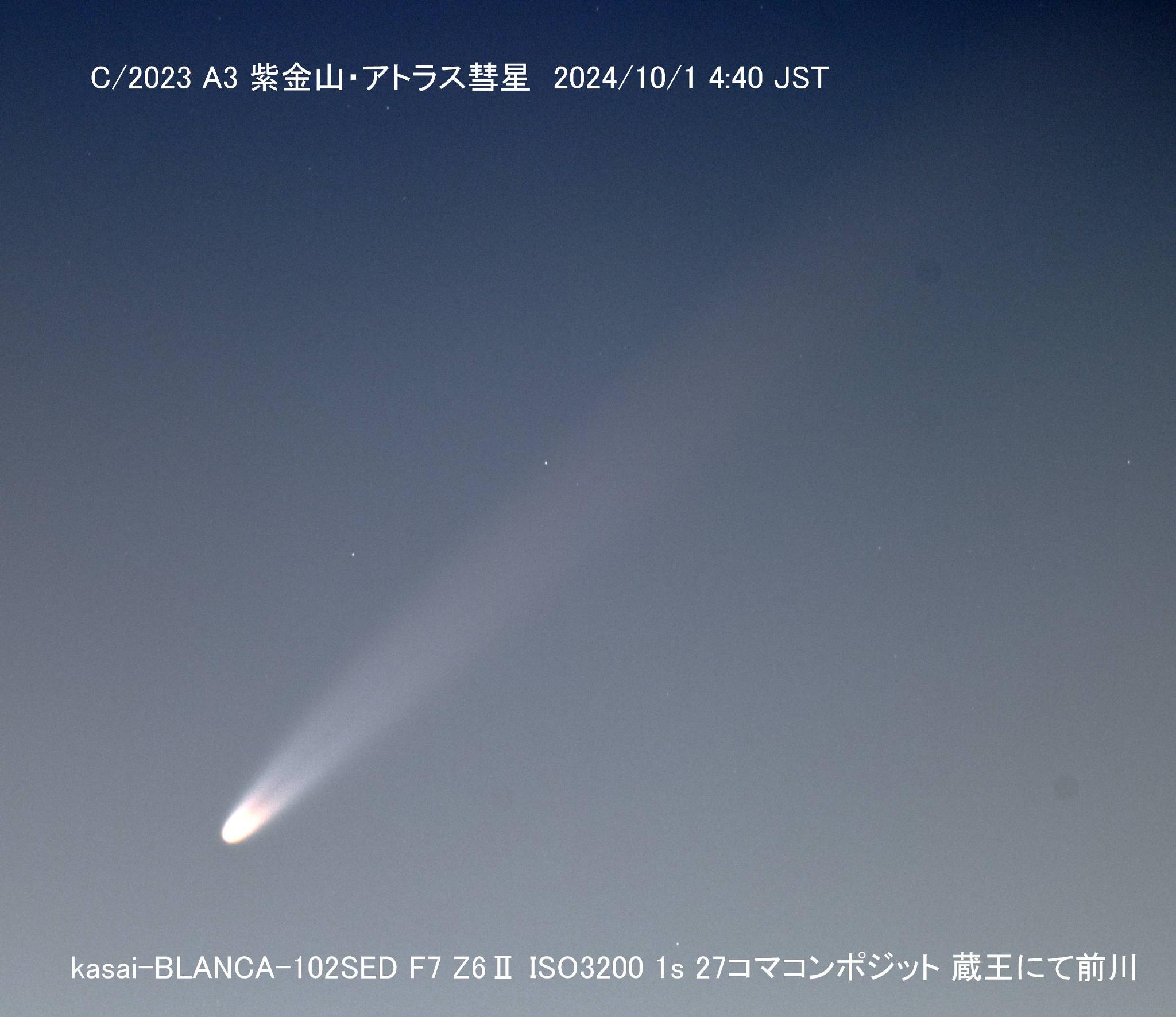 (写真は10月1日 4:27AM, EOS6D SEO-SP4, EF200L/F2.8, ISO3200, 2.6秒, 補正/コンポジットなし)