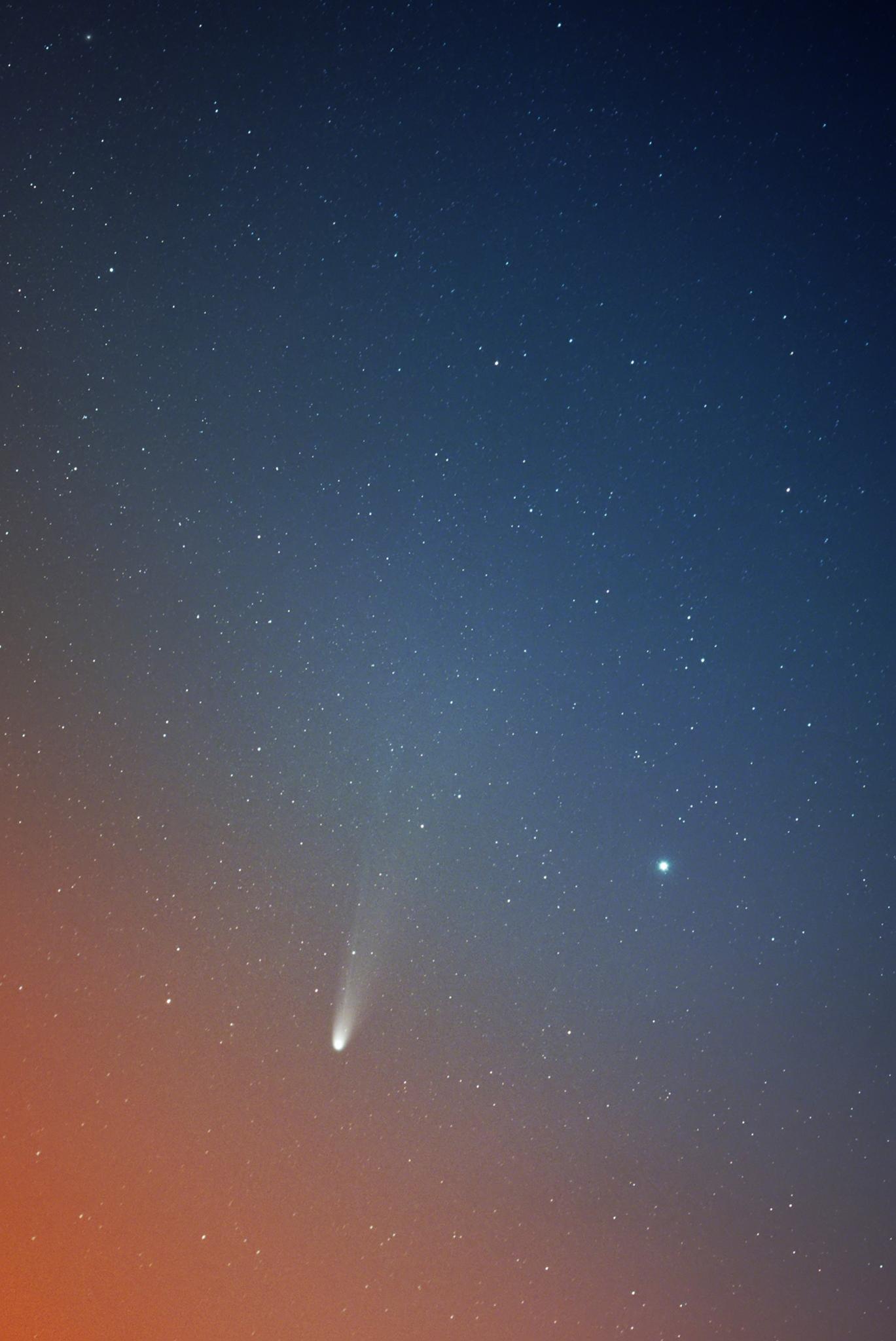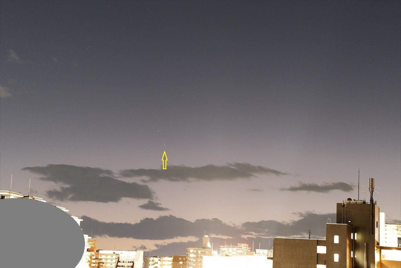 薄明が残る中、地平線すれすれとなったへびつかい座の2番目に明るい2等星サビクとレモン彗星(C/2025A6)を、西側が開けている芋沢にて撮影しました。