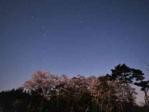 4月11日は仙台市の桜は終わり加減でしたが、いつもの観測地は予想通り満開でした。当日は月齢20.4の月もあり明るく桜を照らしていました。こんなに月が明るいのに、元々暗い空の現地では星も見えます。様々な星座と桜と月のコラボをご覧下さい。