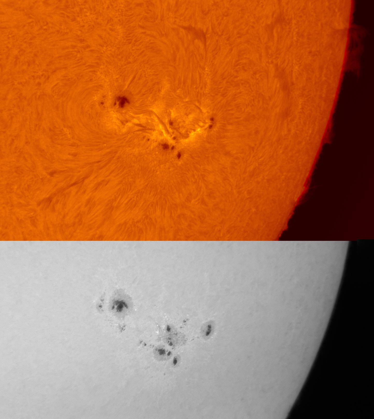 すでに端のほうまで移動しており小さくなってるようですが見ごたえはありました。写真の白色のほうは同じ太陽望遠鏡のままエタロンフィルター部の圧力を抜いて撮影してみました。