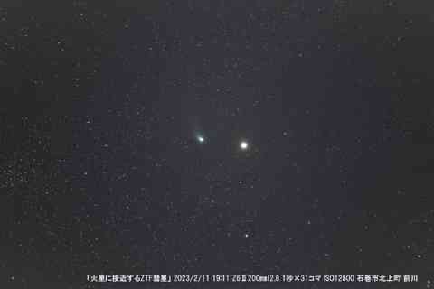 2月11日と14日にZTF彗星と火星・アルデバランの接近を撮影できました。