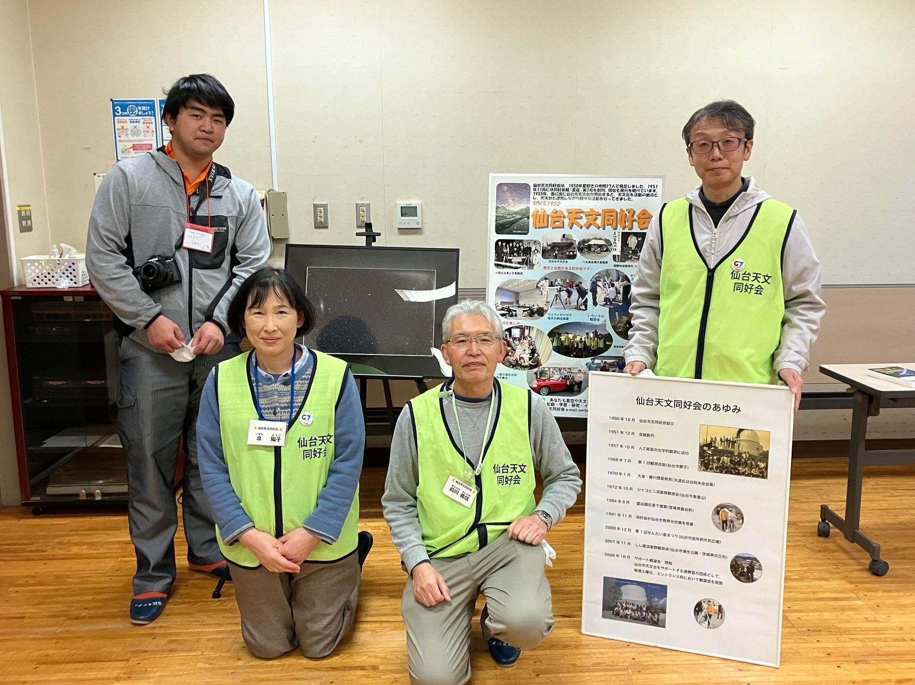 仙台天文同好会は、仙台市天文台で毎月1回土曜日の午前中に例会を開催してその日の夜に一般向けの観望会を開催している他、会誌「星座」の発行(偶数月)や会員向けの観望会、合宿などの活動を行っています。
