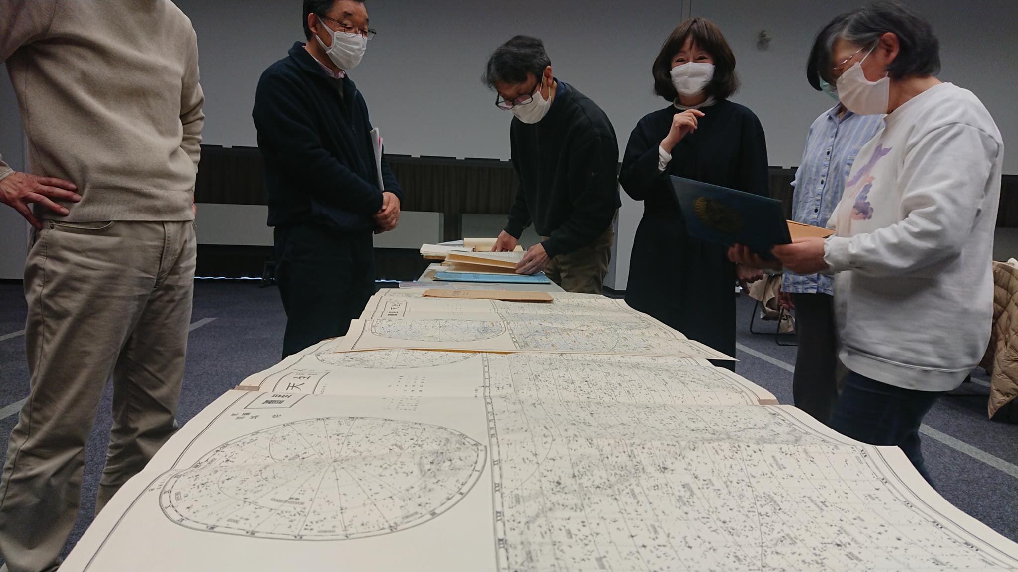 私は、青焼きという言葉を初めて知って、興味を持ちました。写真はみなさんが星図を眺める様子です。