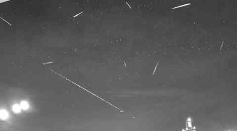 中央の長い流星は,出現,消滅点がどちらかわからないほど高速でした。
