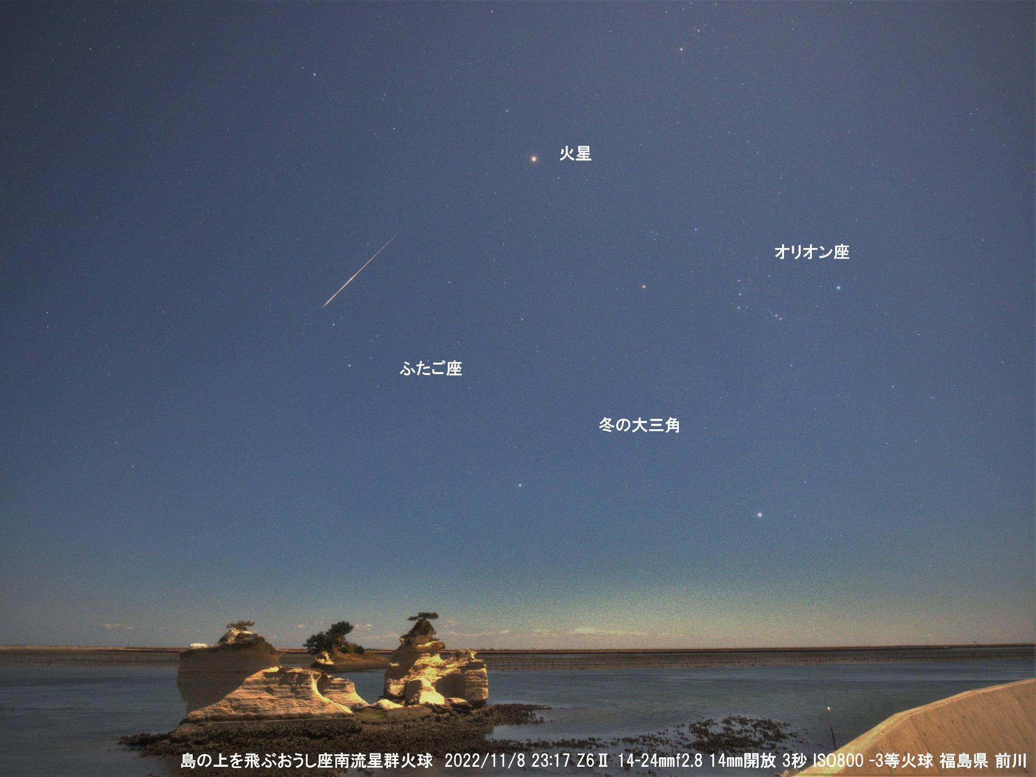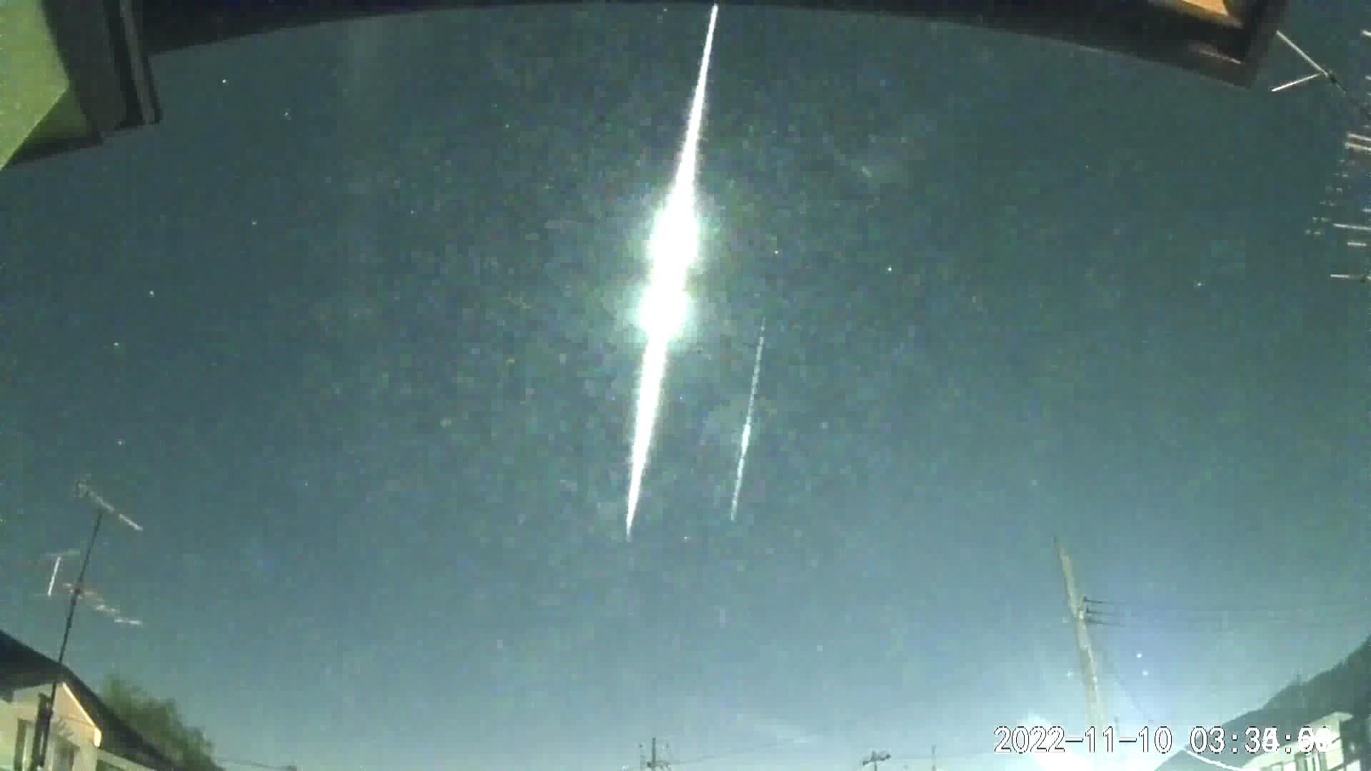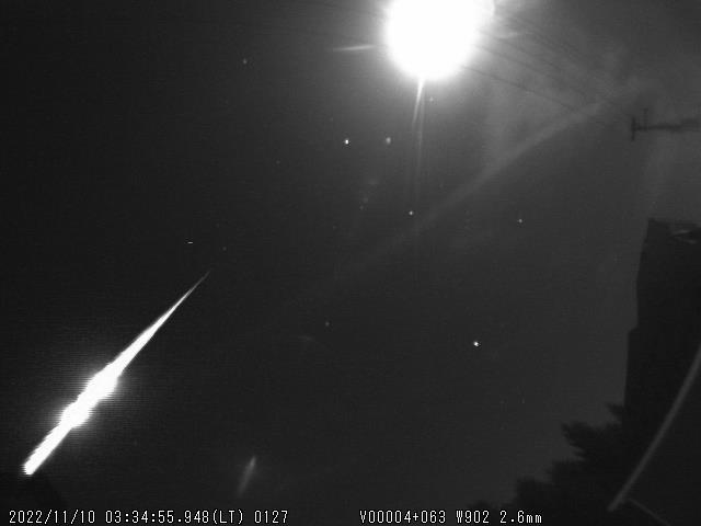 機材の撤去中に撮影しておこうとシャッターを押した瞬間飛んだ-3等のおうし座南流星群火球です。