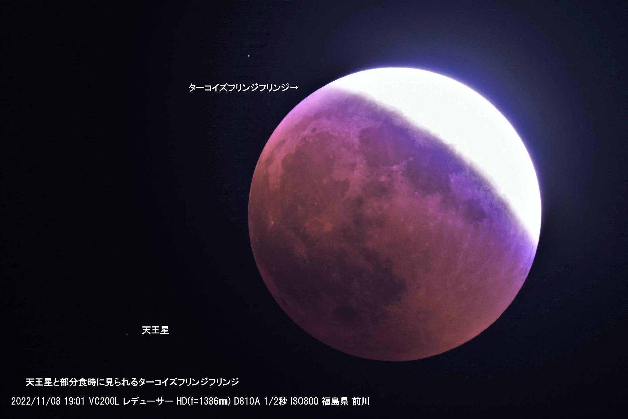 前回の皆既月食で,ターコイズフリンジ撮影成功が1コマだけだったので,今回は食分の違いでどれだけ画像処理で引き出せるかやってみました。取り敢えず1コマ上手く引き出せたのでご覧下さい。