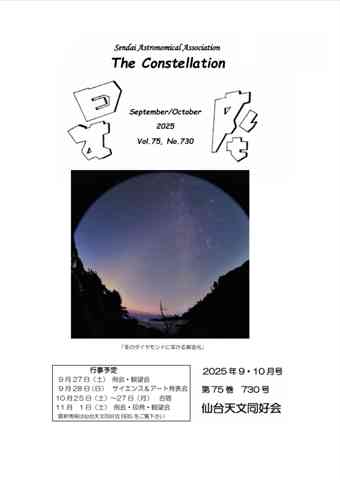 仙台天文同好会は、仙台市天文台で毎月1回土曜日の午前中に例会を開催してその日の夜に一般向けの観望会を開催している他、会誌「星座」の発行(偶数月)や会員向けの観望会、合宿などの活動を行っています。