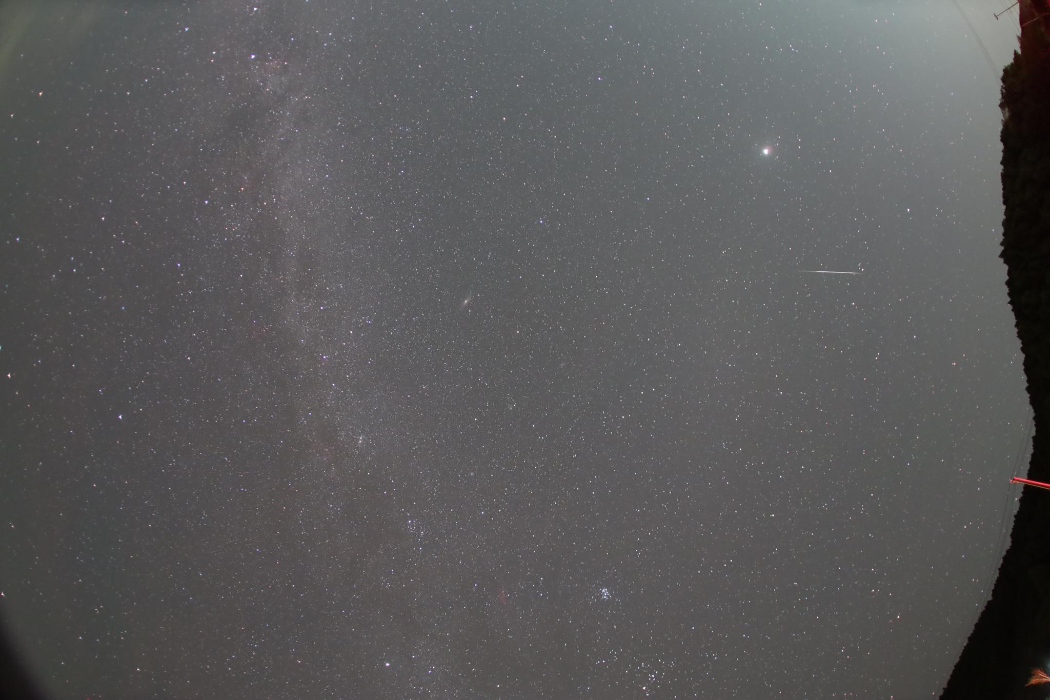 散在写っていました。増光したところでギリ-2等と判断。画像では発光点付近がインターバルに引っかかり,流星体の2/3しか写っていないようです。
