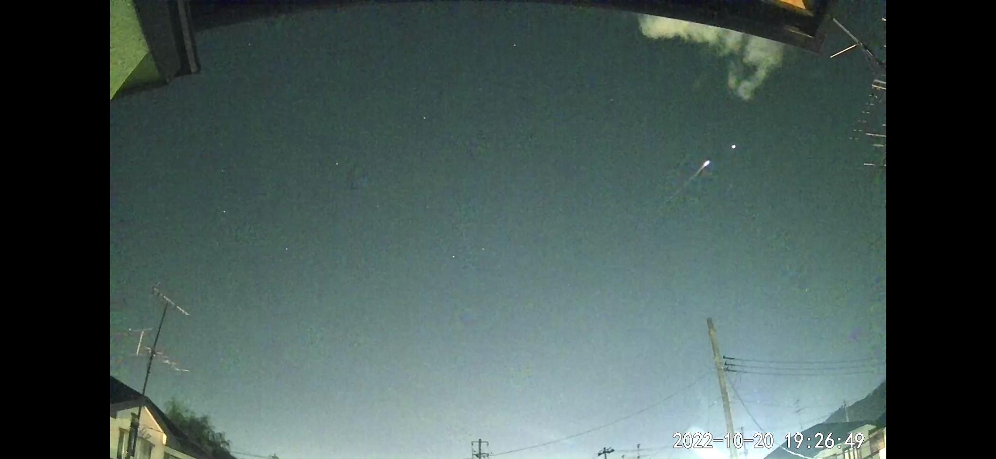 2022年10月22日から23日にかけて自宅に設置してある火球パトロールカメラが捉えた明るい流星を紹介します。