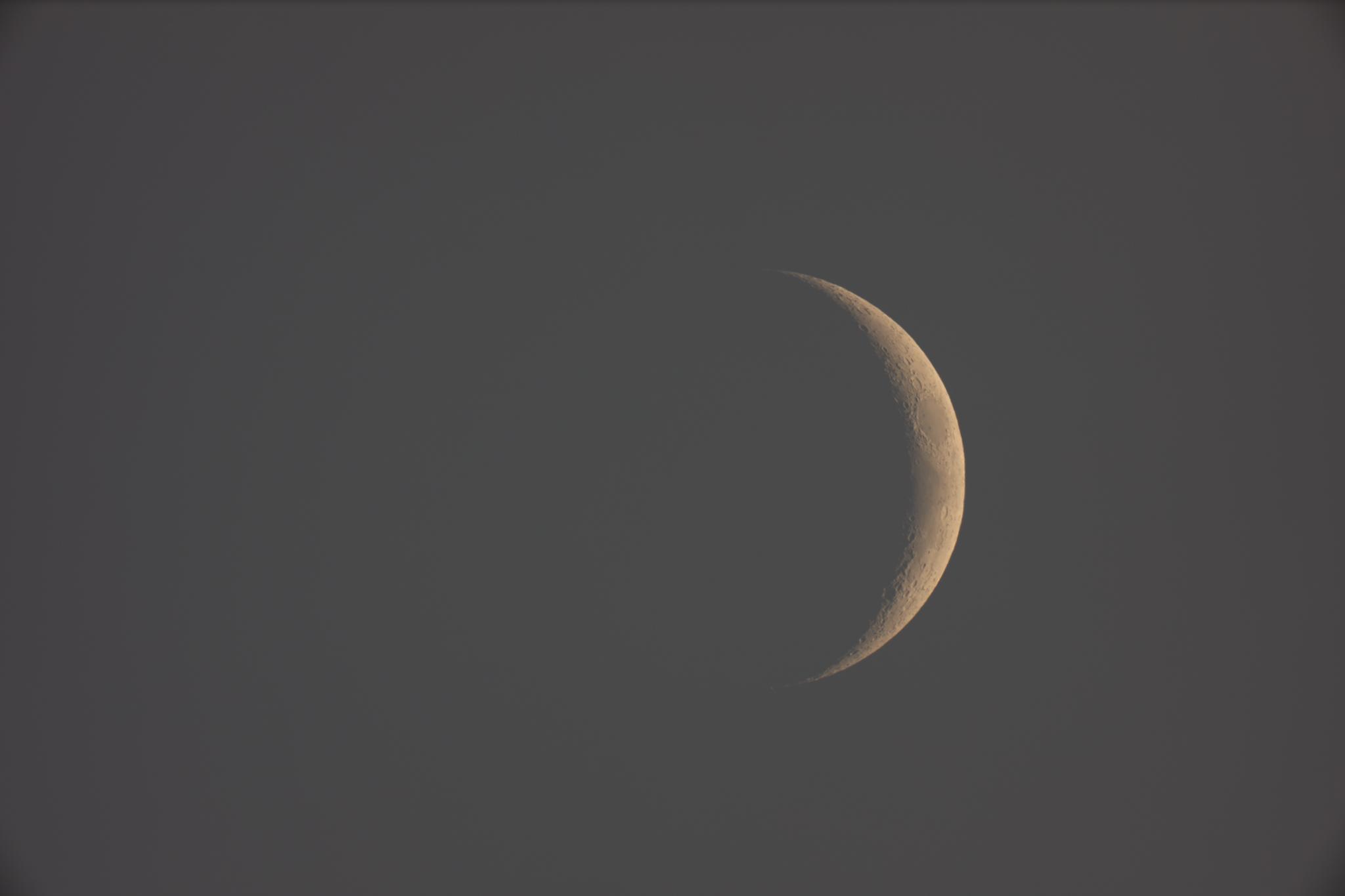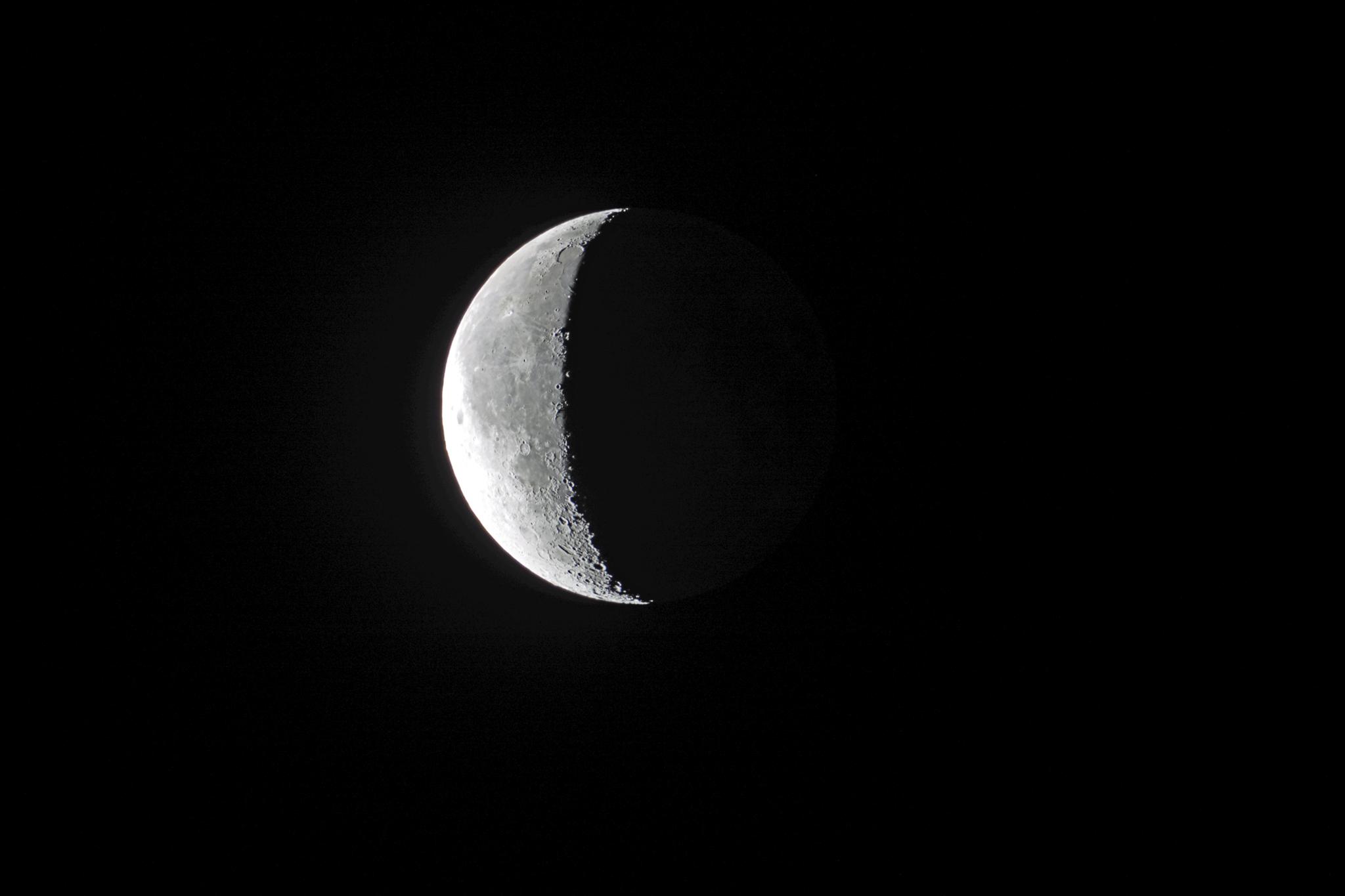 夕方晴れていたので,低空の月を撮影しました。この後流星観測に出かける予定です