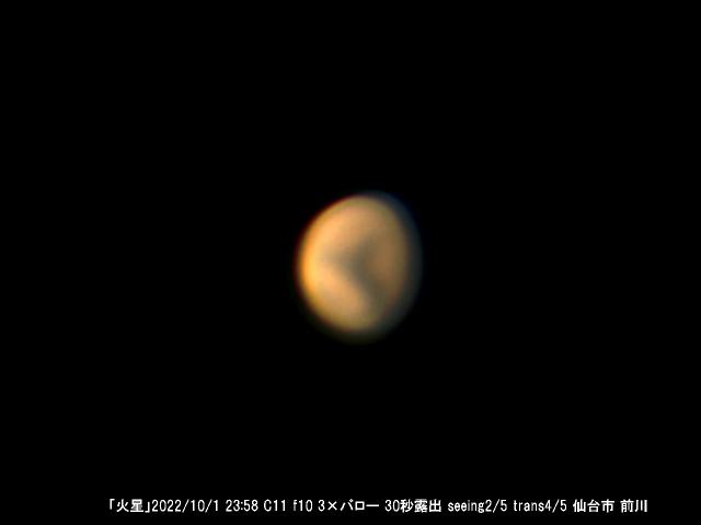 こちらは3倍バローレンズを使って視直径の小さい火星をさらに拡大し,画像処理しています。