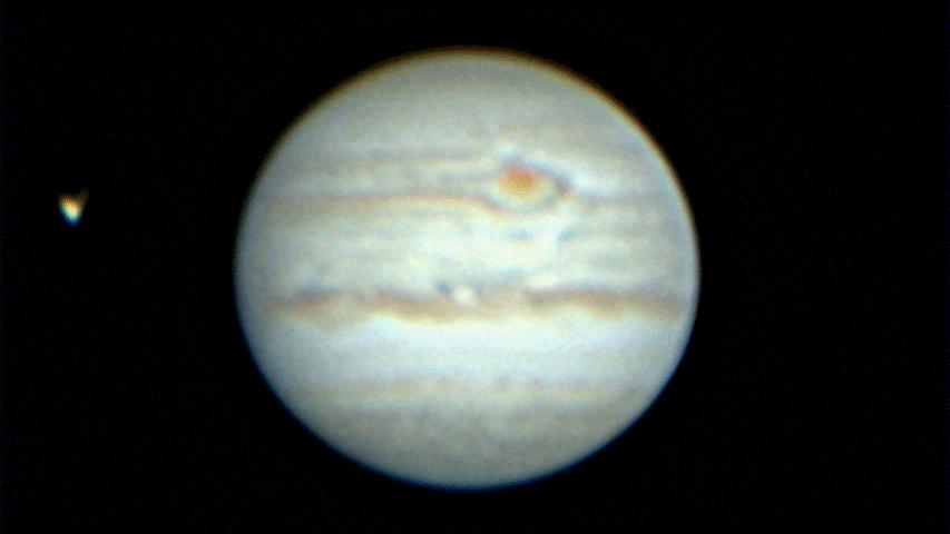 8月21-22日の夜,透明度のいい空でしたがseeingがもう少しと言うところでしたが,かねてから作りたかったGIF動画で惑星の自転をご覧いただきたいと思いテスト撮影をしました。約15分間隔に撮影した7枚の画像から半日かかって私にも作れました。ご覧いただいた感想をお聞かせ下さい。