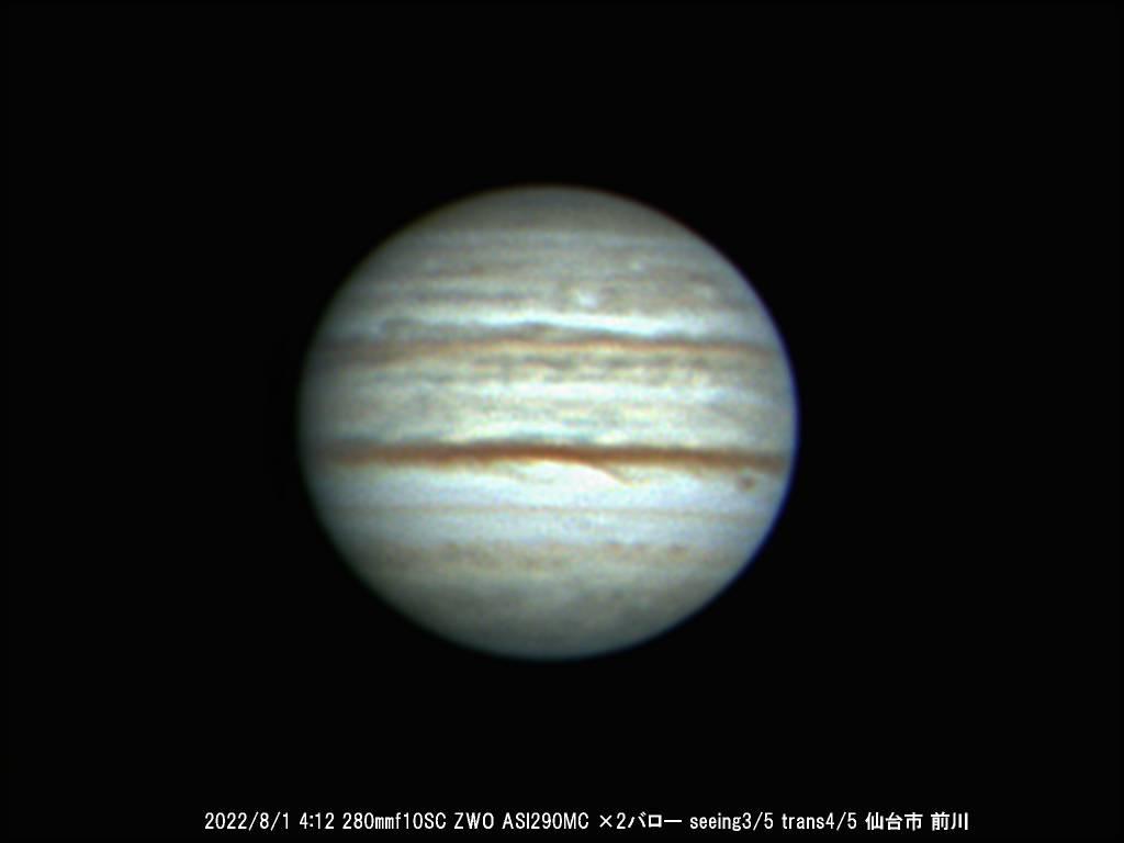 8月1日は前日に続き晴れました。木星の画像は太平洋高気圧の影響もあって,シーイングが安定し細かい模様が見えるようになりました。この条件がこのまま長続きすることを願いながら撮影を続けていきたいと思います。惑星,流星と観測に忙しい時期となってきました。