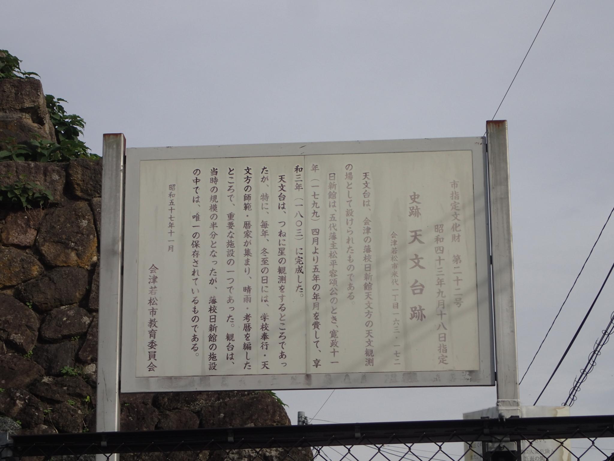 お天気が悪く天体写真等撮影できない日が続いていますので,コロナ前に訪れた会津日新館天文台跡を載せます。
