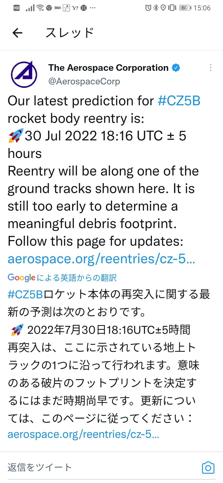 今時分の落下予測時間帯に入っております。皆さん屋外はお気をつけて!!