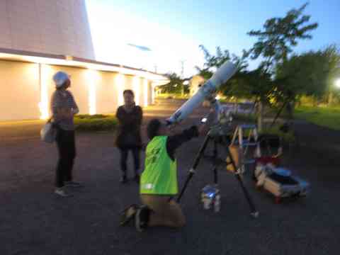 これまで3か月間観望会が悪天候により開催できませんでしたが、久々に晴れた空の下、月や水星、星座の一等星をめぐる観望会ができました。協力してくれた会員の普段の行いが天に通じたものと思います。天気予報では数日前まで曇りでしたが、本番が近づくにつれて晴れマークが大きくなり、仙天観望会もその後の蔵王雲抜け観望会も大成功でした。集合写真の通り当日は5名+αでの観望会、開会予定時刻前から準備と観望が始まりました。延べ50名ほどが観望会に参加され、水星、月を皮切りに火星やしし座のレグルス、二重星のアルビレオ等々観望できました。私はスタッフとして、写真配りをしていましたが、広報用の写真でも、受け取る方は大変喜んでおりました。中には写真をいただくことに遠慮している方もおり、こちらから積極的に話しかけて15枚ほど配ることができました。観望会の様子を数枚アップいたします。