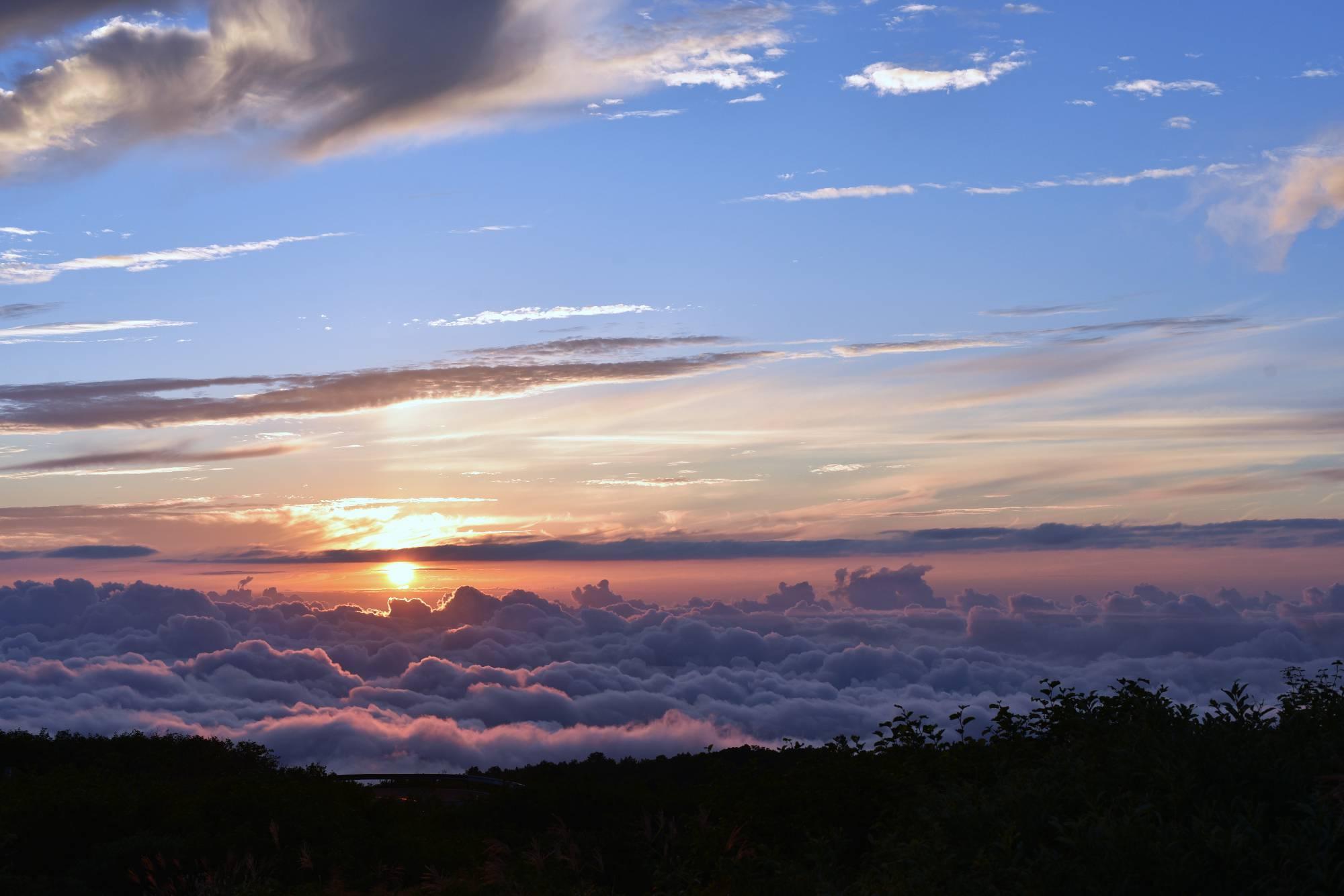2025/08/14ペルセウス座流星群観測後に蔵王からの帰り道、雲海の上に朝日が昇り、雲海の頭を赤く染めていました。あまりの光景に駐車場に車を停めて、我を忘れて撮影しました。ご覧ください。