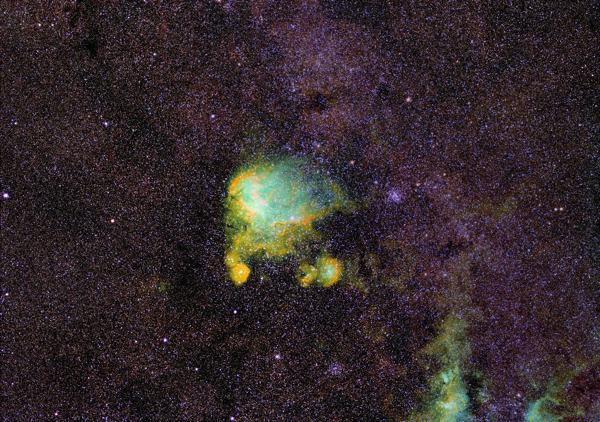 です。明るい月が出てきたので、ナローバンドで撮って、SHO合成しました。