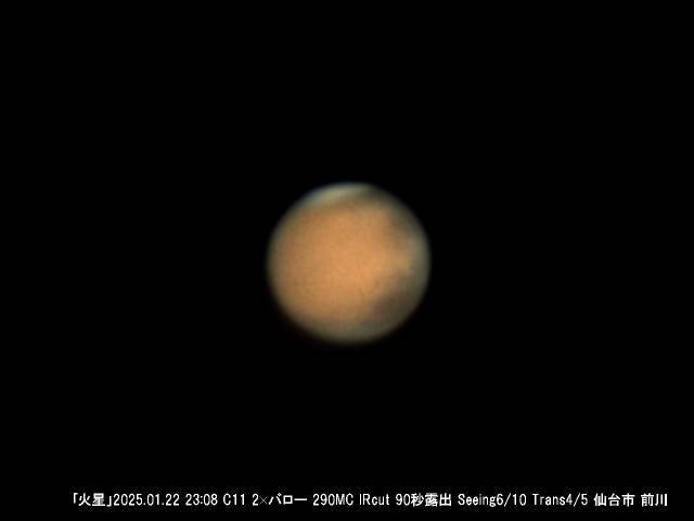 今月12日に地球に最接近(約9608万㎞)した10日後の火星です。まだ14秒台の大きさがあります。