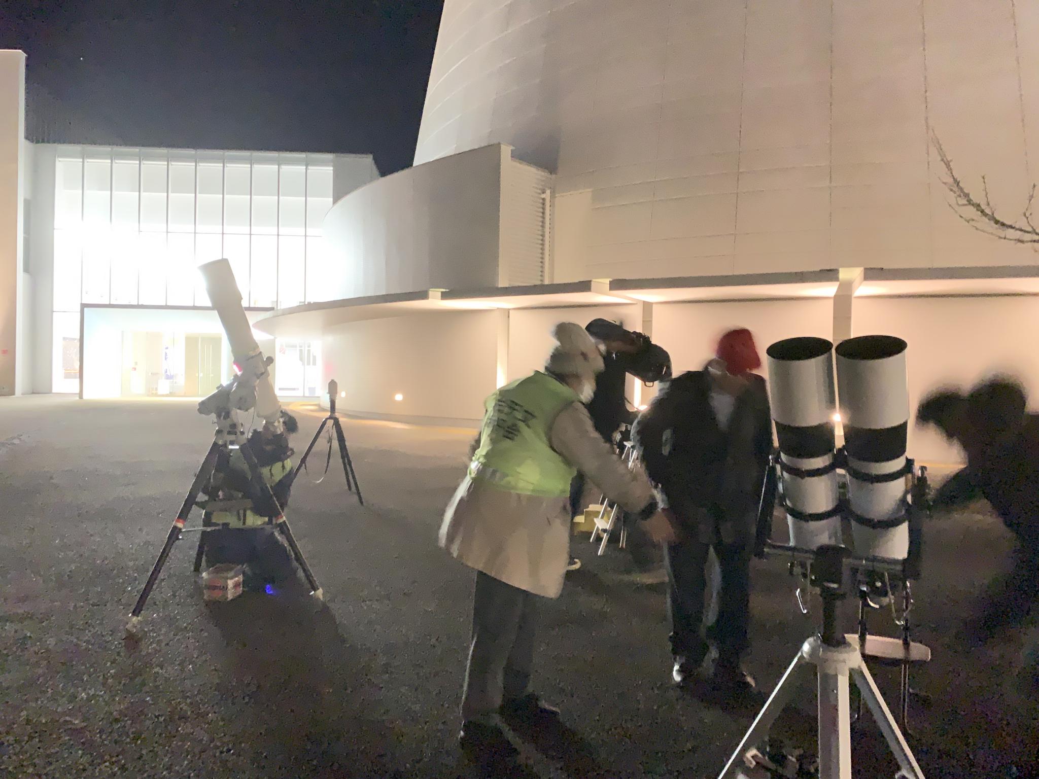 参加された会員の中にはSeestarを操ってオリオン座大星雲、プレアデス星団などをスマホに保存して、お客さんに説明する小学生に感心される方もいました。また、新登場の28センチシュミカセで観望会を盛り上げていた仲間もいました。終了間際には−2度まで下がった気温に機材に霜が着いた中で撤収を終えて帰りました。皆さん寒い中お疲れ様でした。会場には会長も現れて、皆さんを激励され、たくさん元気をいただきました。ありがとうございます。
