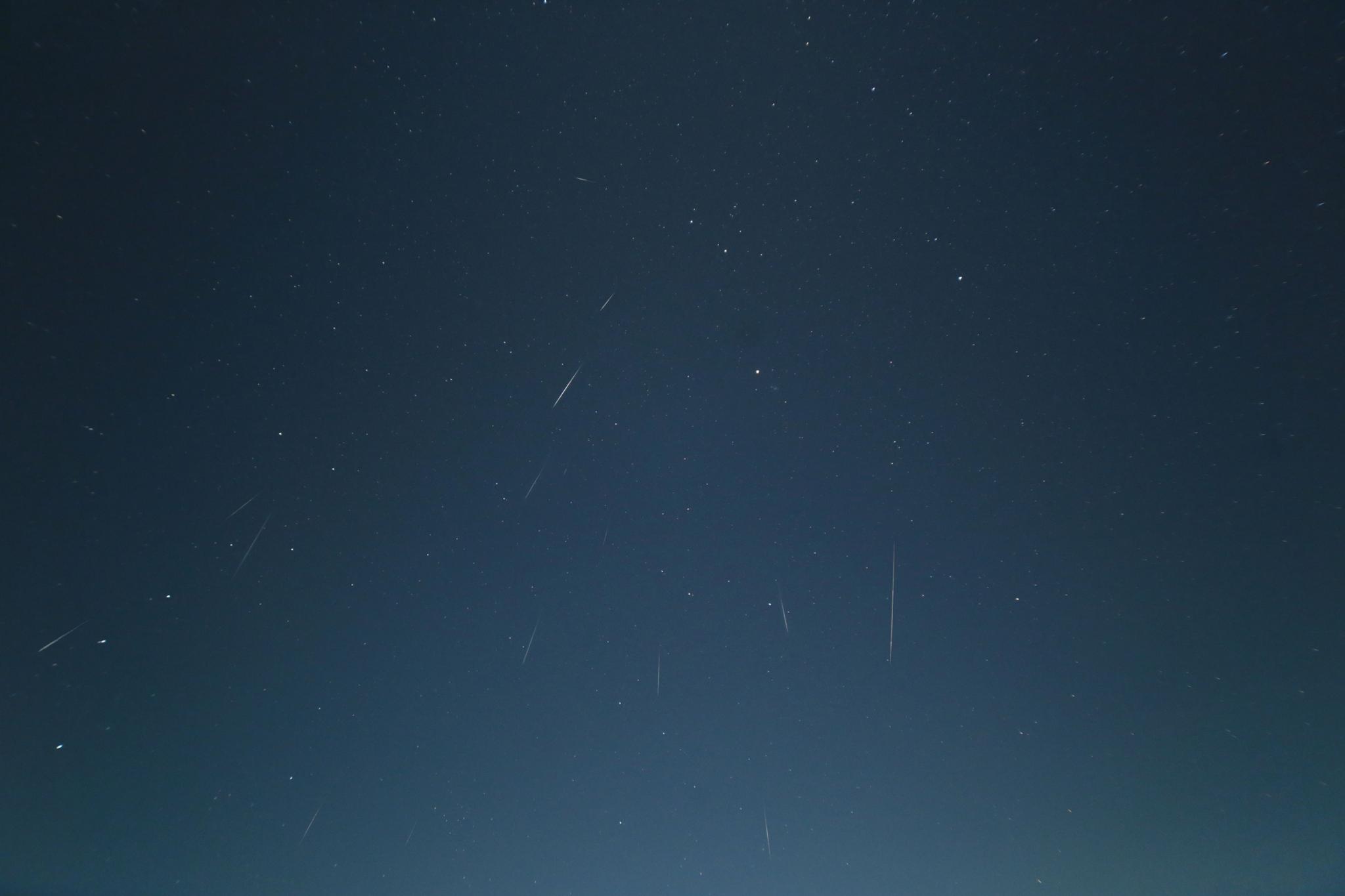 正確なカウントはしていませんが4時間で30個ぐらいは確認でき、カメラを向けた範囲外で火球レベルのものや流星痕が残るものもあり