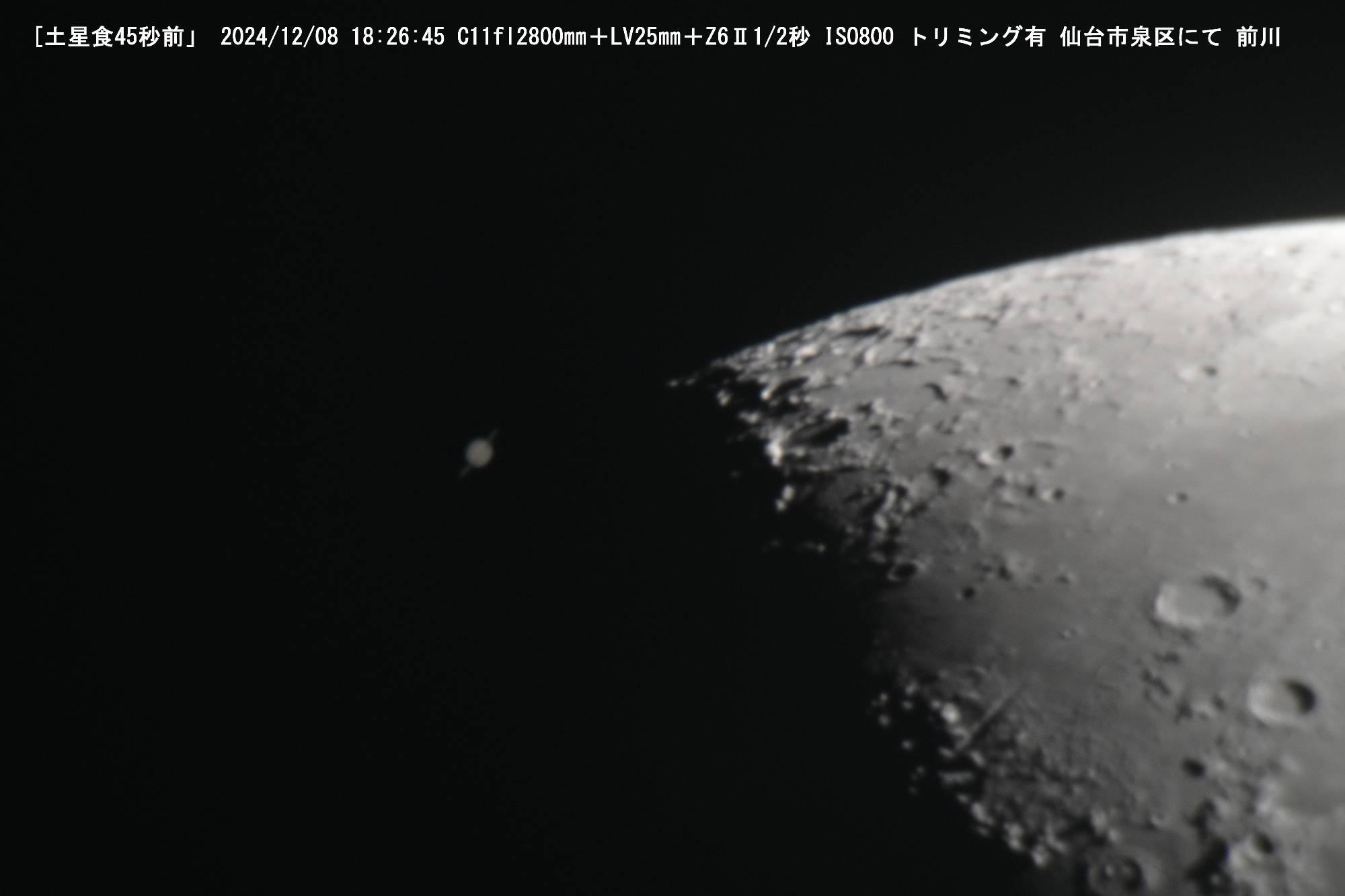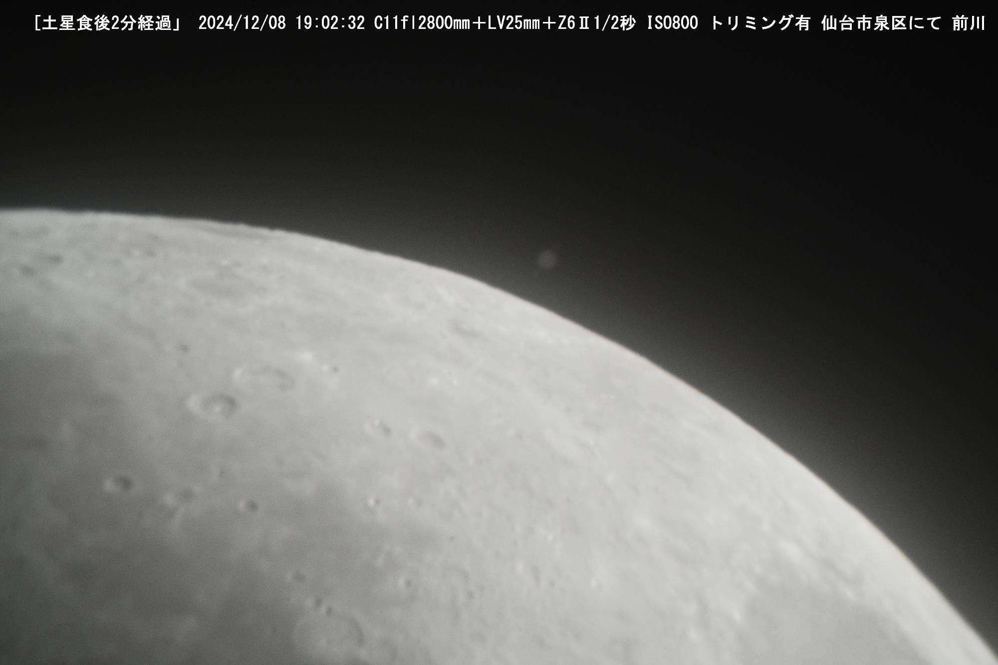 土星が月に隠されるのが土星食ですが、今回は食の時間中雲が空を覆い、食そのものが見えないという結果に終わりました。