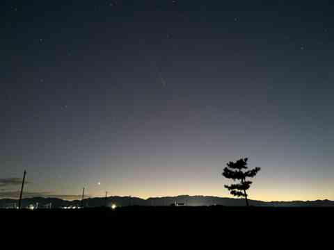 50mmで地上を入れて星景風にしたかったのですが、撮影開始時には彗星の