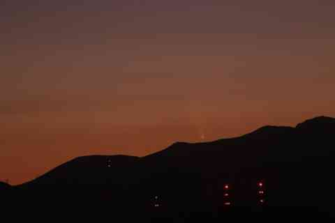 とてもきれいな夕焼けが彗星に被って見えていました。この後まもなく海へ沈むように消えていきました。