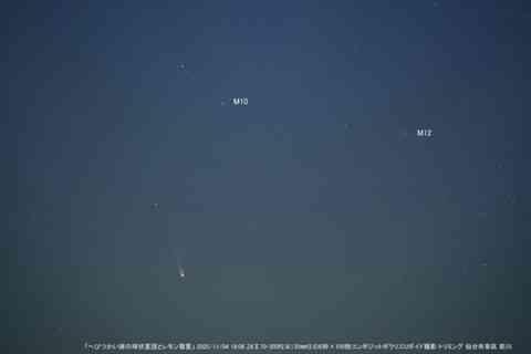 しかし、月明かりの影響でレモン彗星の写りが悪く、尾が3度ほどの長さしか写りませんでした。画像処理にも時間がかかり、夜中まで作業をしていました。球状星団を見やすくするためにバッサリとトリミングしました。