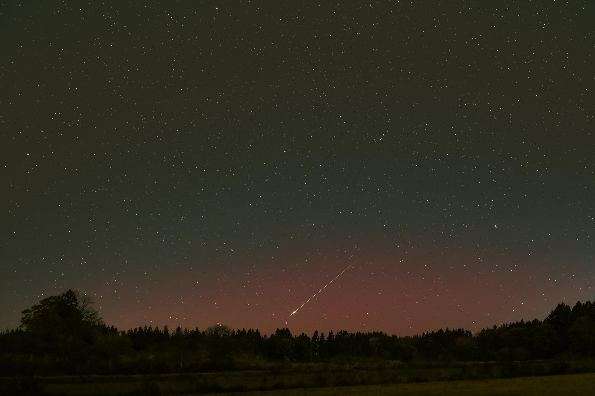 さらさんが撮影された低緯度オーロラと流星のコラボはびっくりしました。まるで絵にかいたような1枚で、さらさんのクマに負けない魂の一枚になりましたね。本当にすごいです。