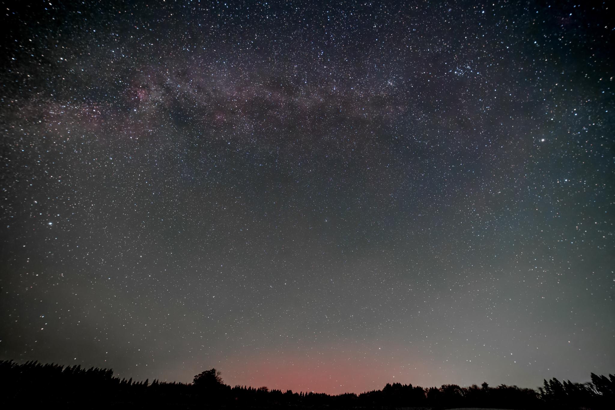 オーロラと白鳥座からカシオペア座に渡る天の川を広角レンズで切り取りました。