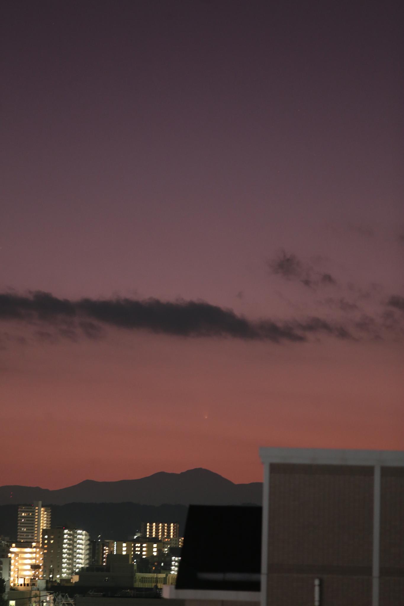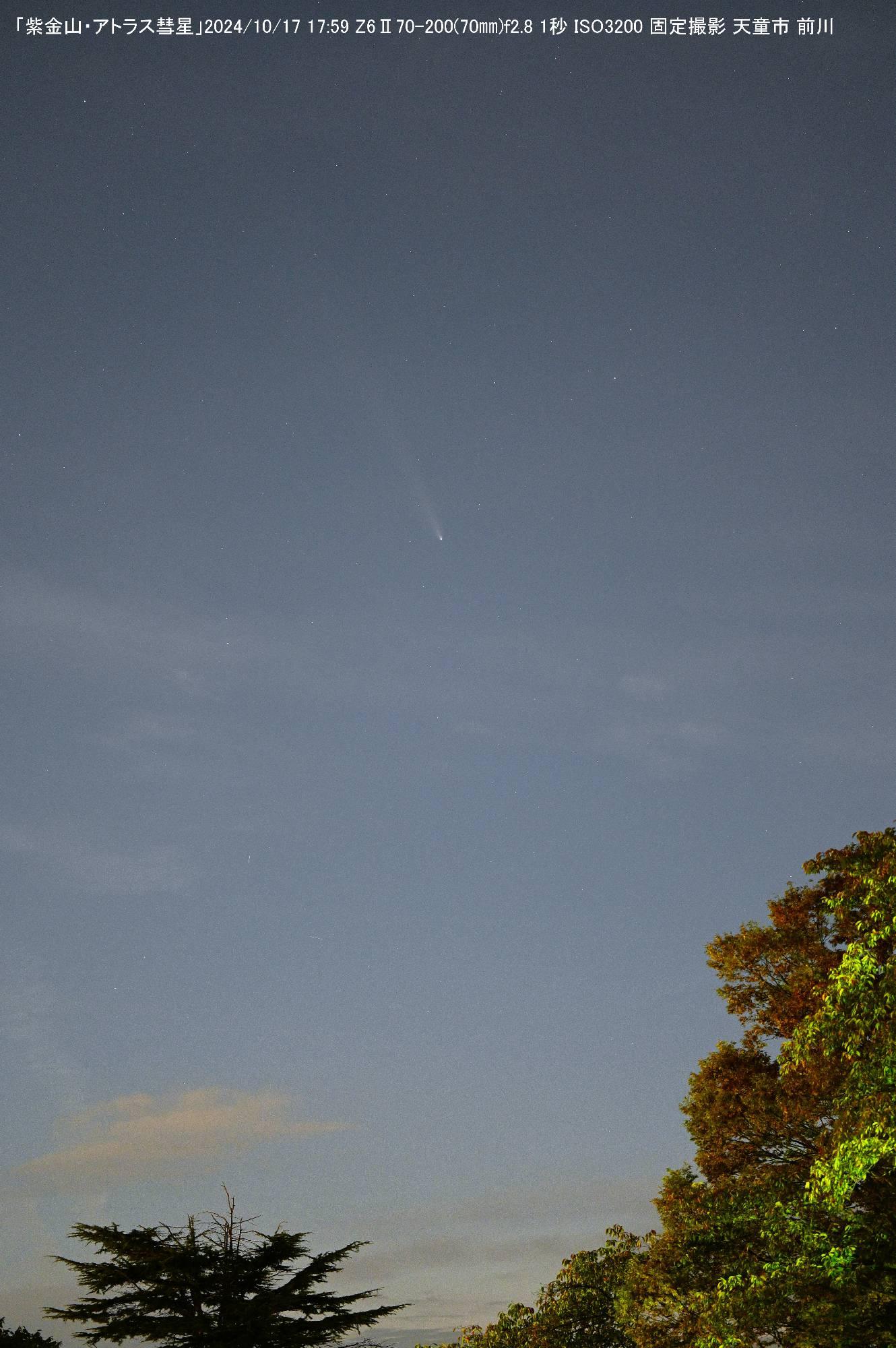 10/15に川崎市宮前区有馬で撮影した紫金山・アトラス彗星です。8x40mmの双眼鏡でもしっかり見えました。