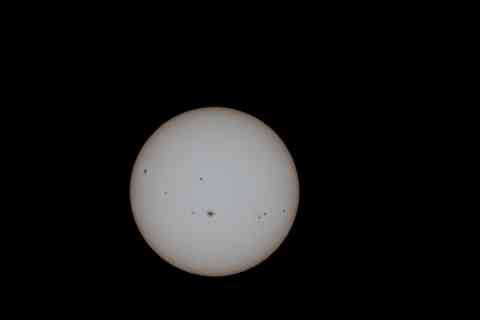 大きな黒点が中央付近にきました。晴れ間があったので撮影。