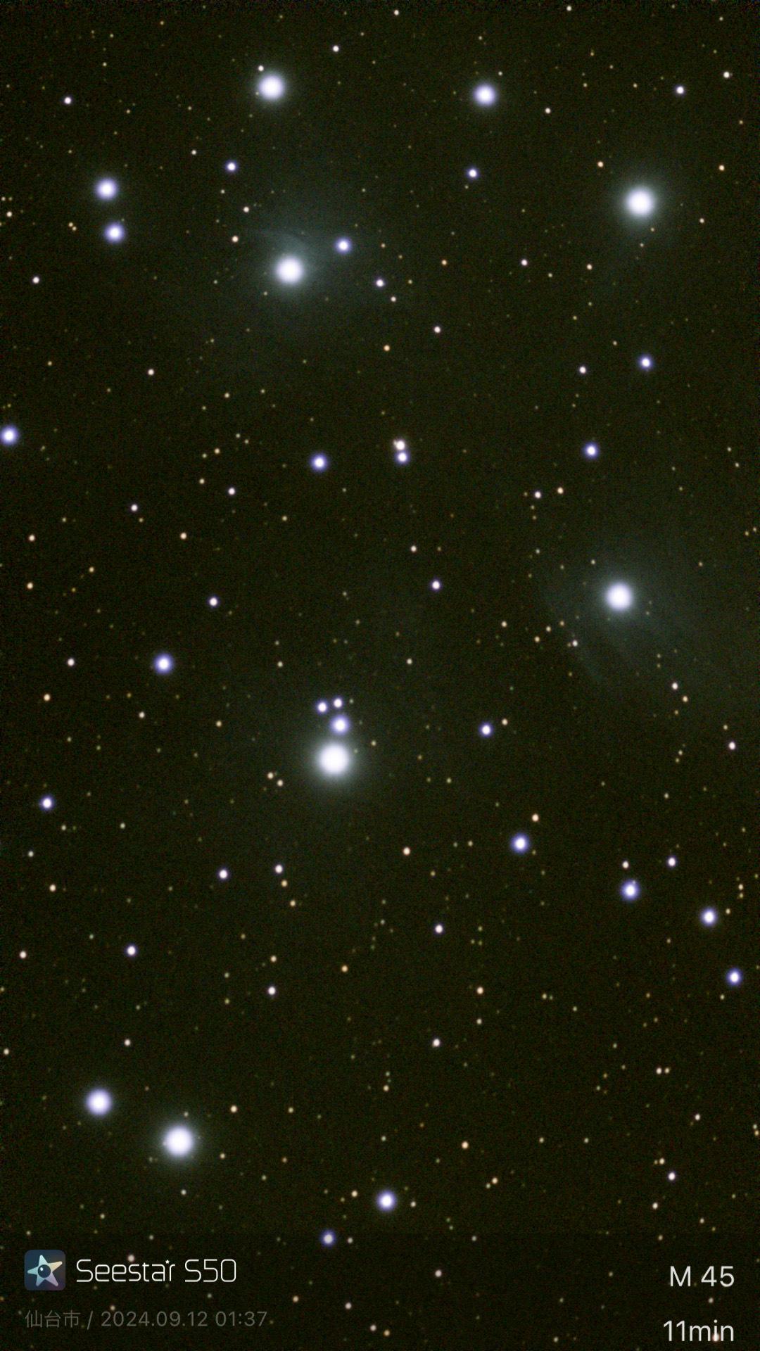 銀塩写真(死語ですね)時代で苦労した経験からすると、本当に夢の様な機材です。最近の円安でちょっと値上がりしている気がしますが、へたに鏡筒とか赤道儀とかCCDカメラを購入するよりも遥かに手軽。こういった機材が日本発でないのが、日本の天文業界の問題でしょうか・・・屈折鏡筒も、安くて性能がそこそこなのは外国製。なお、プレアデス星団は双眼鏡で見ても綺麗です。