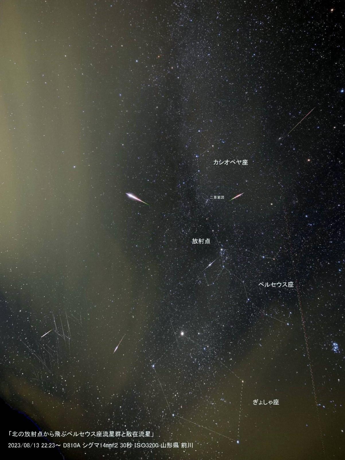 今年のペルセウス座流星群の極大前後は台風の影響でみごとに欠測となりました。それで昨年2023年の処理済画像を再処理して皆さんにご覧いただこうと投稿します。