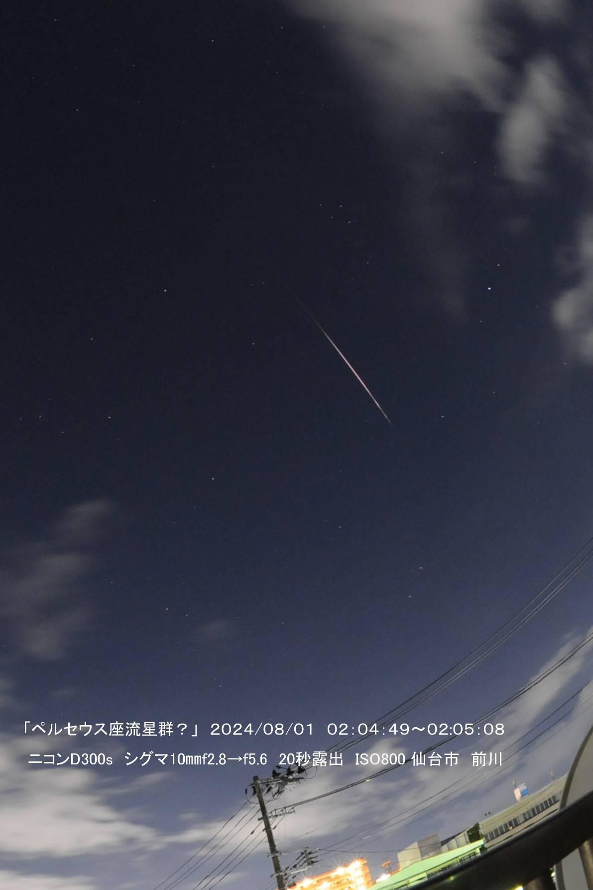 流星の光度変化がペルセウス座流星群のようで、方向から言ってもほぼ間違いではないでしょう。