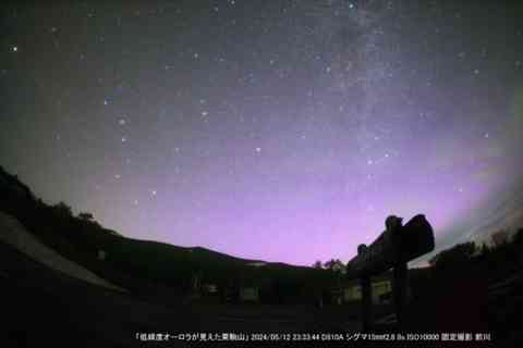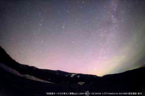 いままで、見たことがない赤やピンク、赤紫などの低緯度オーロラを北の栗駒山を前景にしてとらえることができました。