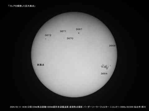 お二人の会員が本日の様子を伝えております黒点は、まさに巨大黒点です。極大期の特徴ですね。