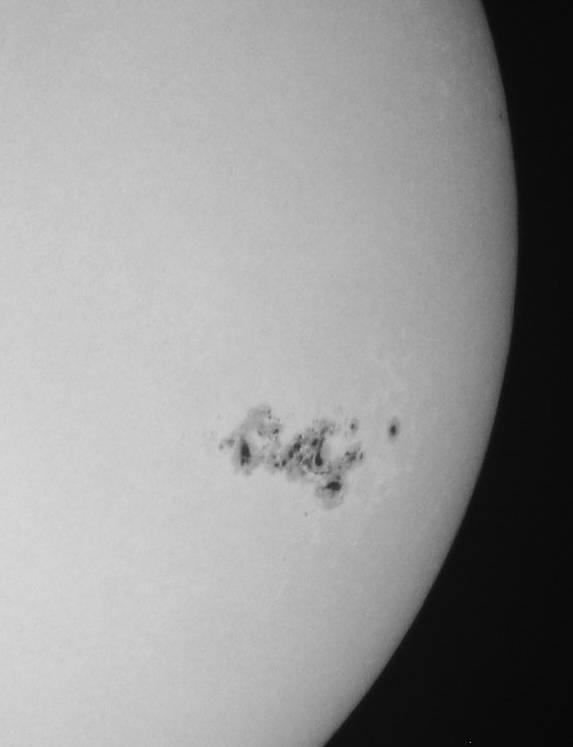 普通の太陽写真もあった方がいいと思いますので,午後2時30分の白色光の太陽を投稿します。